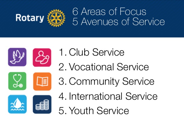 The term Avenues of Service refers to the five parts of the Object of Rotary: Club Service, Vocational Service, Community Service, International Service, and New Generations Service.